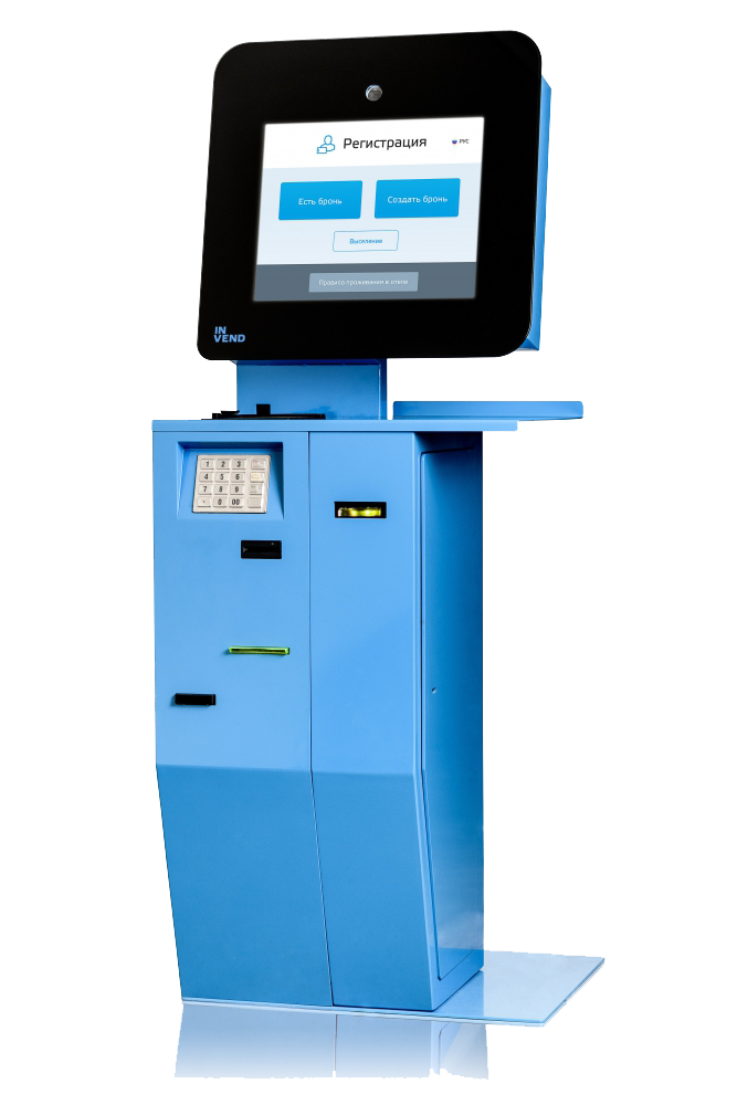 Терминал для самостоятельной регистрации гостей позволяет гостю без обращения на стойку ресепшн произвести регистрацию гостя (гостей), бесконтактно оплатить выбранный номер (и/или дополнительные услуги отеля), получить электронный-ключ карту для прохода в свой номер.
