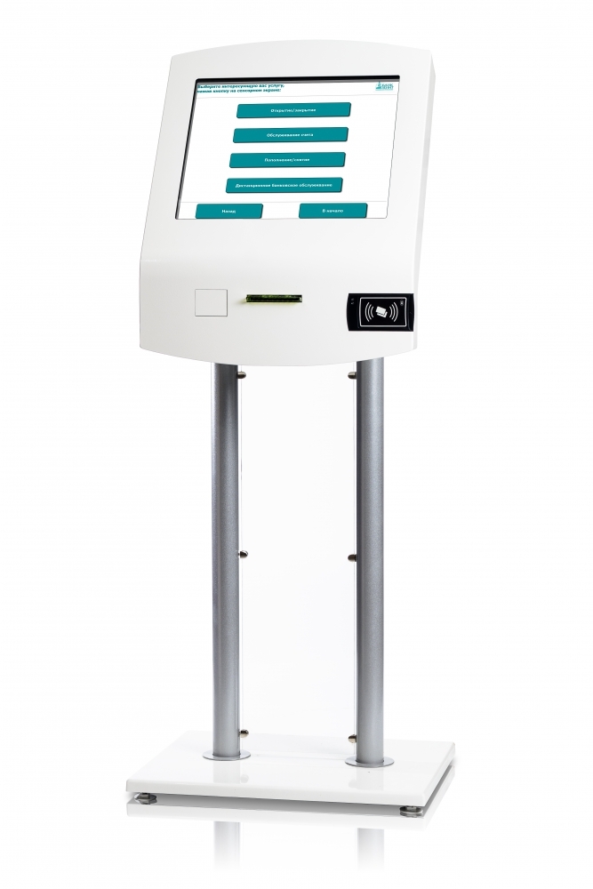 Информационный терминал «Октопус» версии ЭО от компании-производителя «Инвенд» - это одно из самых популярных оборудований многих российских компаний. Сочетание доступной цены и современного неповторимого дизайна корпуса выгодно выделяет данный терминал среди конкурентов. В отличие от многих уличных напольных установок «Октопус» имеет сенсорный дисплей под углом на уровне глаз пользователя и тонкие металлические трубы в качестве опоры. Инфомат легко монтируется и транспортируется. Данная модель терминала часто используется как система электронной очереди во многих крупных банках и государственных организациях.